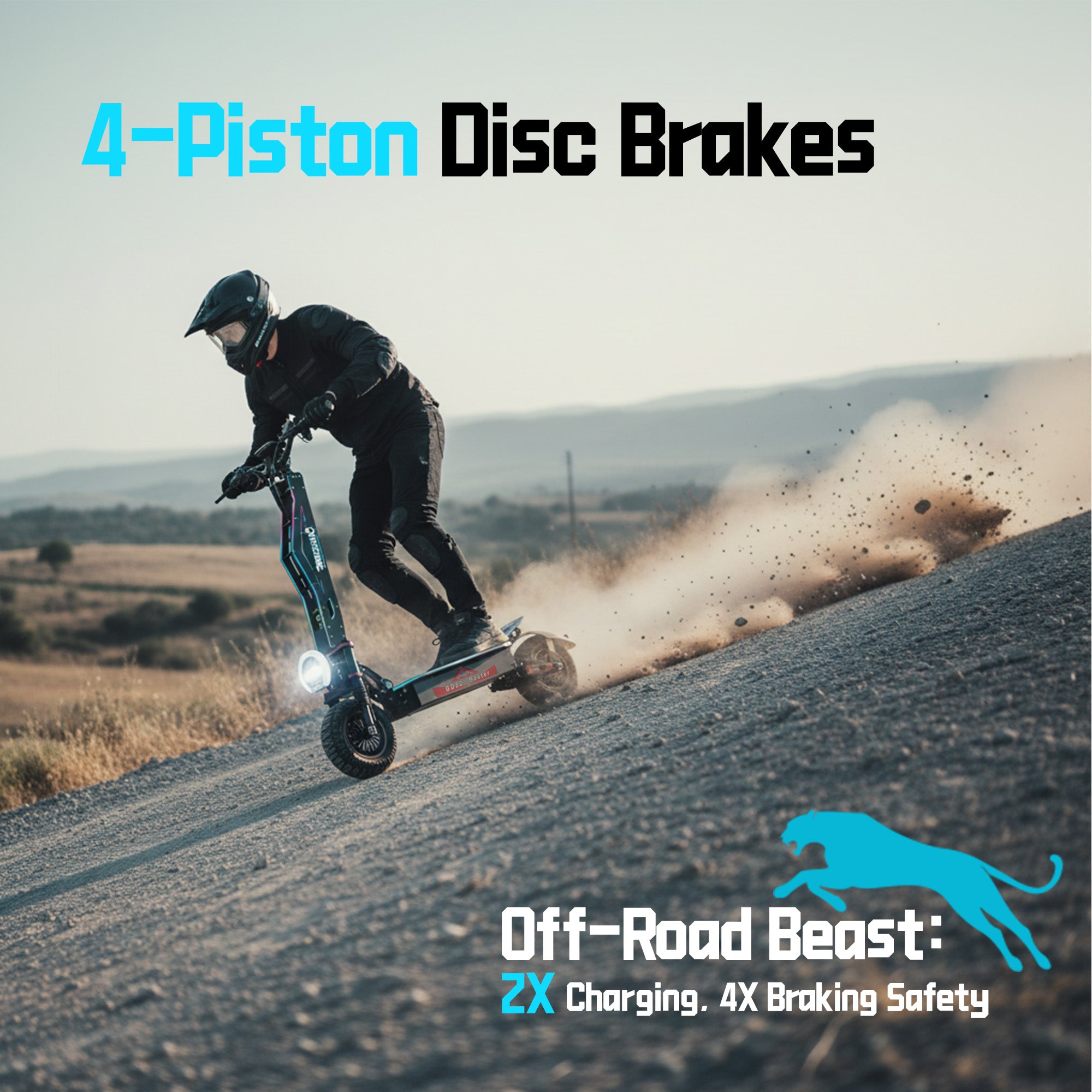 Equipped with front and rear four-piston hydraulic calipers and 3mm thick brake rotors, the JL86 Pro delivers powerful, precise stopping performance.