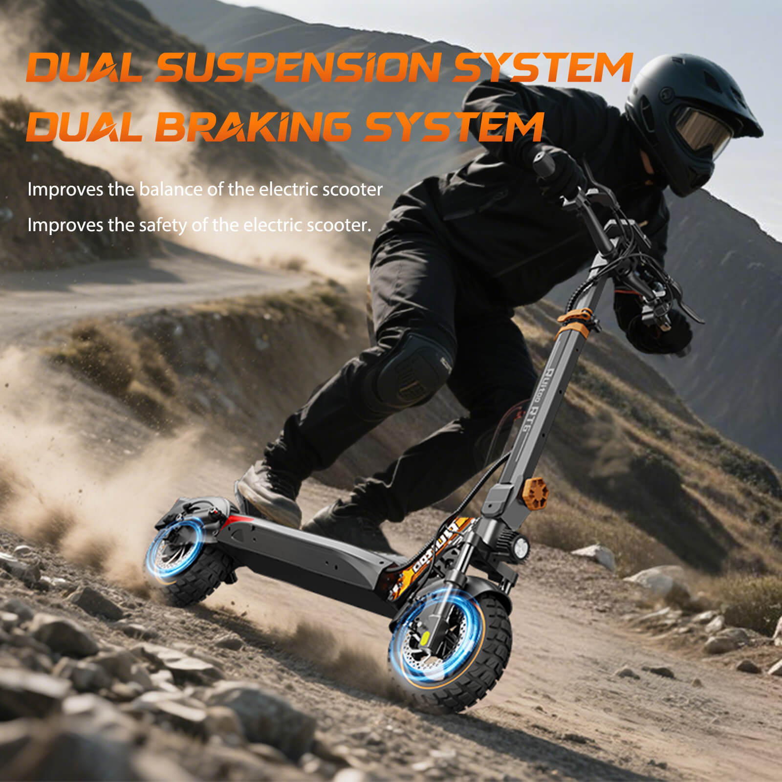 This system significantly improves stability and rider confidence, especially at higher speeds and on rough surfaces.